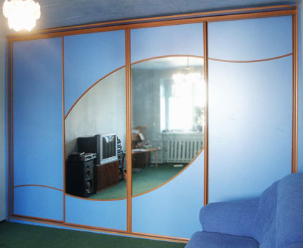 Габариты, мм: 2500х3600х600 Профиль Найди «под дерево», гнутый. Наполнение дверей: зеркало серебро, ЛДСП Примерная стоимость 55 000 руб.