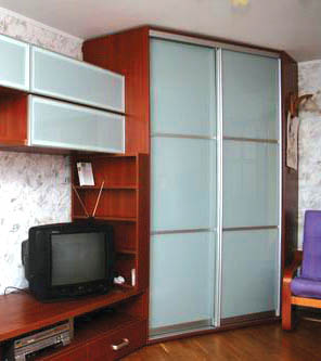 Угловой шкаф-купе по размерам заказчика. Декор ДСП – яблоня. Профиль алюминиевый Simline Modern натура. Двери комбинированные белое стекло Lacobel. Услуга “МОБИЛЬНЫЙ ОФИС”. Замеры, дизайн-проект, заключение договора, оплата в любом удобном для вас месте. Выезд дизайнера - бесплатно.