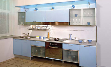 Кухня по индивидуальному заказу. Материалы: короб ЛДСП, столешница постформинг, фасады МДФ крашенные. Профиль рамочный - алюминиевый. Завершением кухонного гарнитура послужил козырек из стекла. Стоимость кухни 57 000руб. со стандартным наполнением.