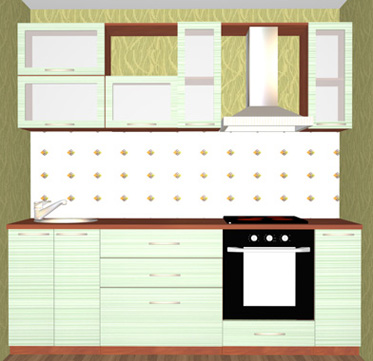 Кухонный гарнитур. Фасады: МДФ в пленке Штрокс Олива и стекло Мателюкс. Корпуса ДСП Яблоня. Столешница постформинг 28 мм.