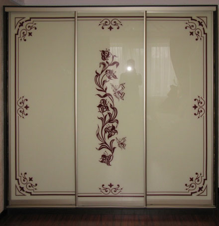 Габариты, мм: 2300х2500х600 Профиль Италмасс + С – обр анодированный. Наполнение дверей: Стекло крашеное рисунок по трафарету + фон Примерная стоимость 46 000 руб.