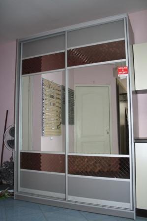 Данный образец изготовлен ЛДСП,цветное стекло, зеркало, система купе алюминий Версаль.Стоимость данного образца 19600 руб., в цене монтаж и доставка. Срок изготовления - 14 дней.
